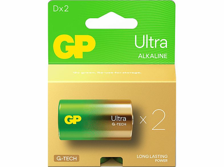 Батарейка GP Ultra Alkaline 13AU21-SB2, LR20, D, 1.5V щелочная (2 шт/блс)(13AU21-SB2)