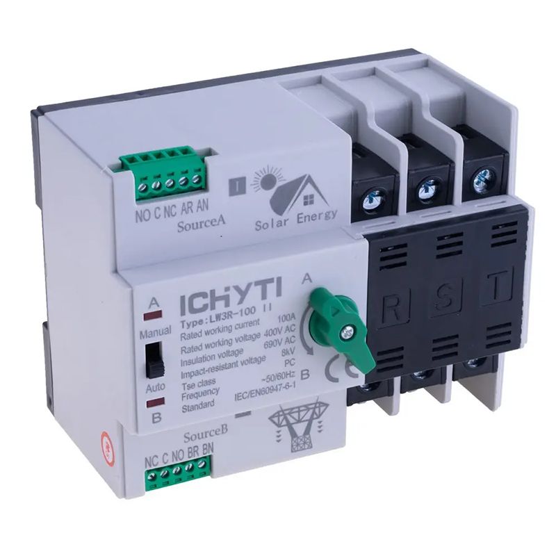 Блок АВР LW3R-100II 3p 100А на DIN рейку клеми справа(206928)