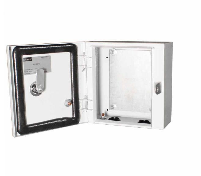 Бокс монтажний призначений для монтажу приладів обліку та пуско-регулюючої апаратури на розсуд споживача. Для вуличних умов із ступенем захисту IP54. Є можливість демонтувати люк у днищі для зручності виконання кабельних отворів. Монтажна панель входить у комплект.