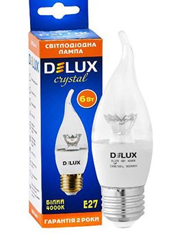 Лампа LED DELUX BL37В 6 W 4000К 230 V E27 свічка на вітрі кристал(90011804)