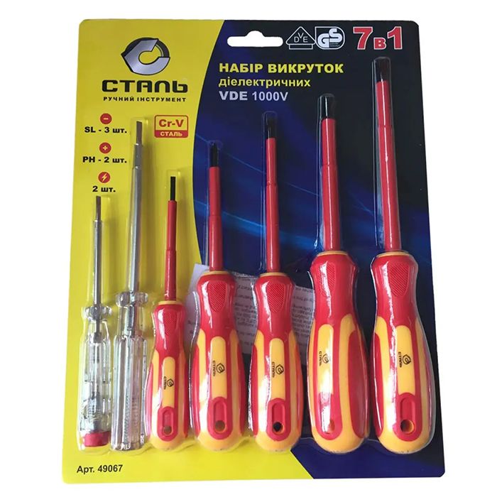 Набор диэлектрических отверток, 1000V, VDE, 7 шт. Сталь 49067(49067)