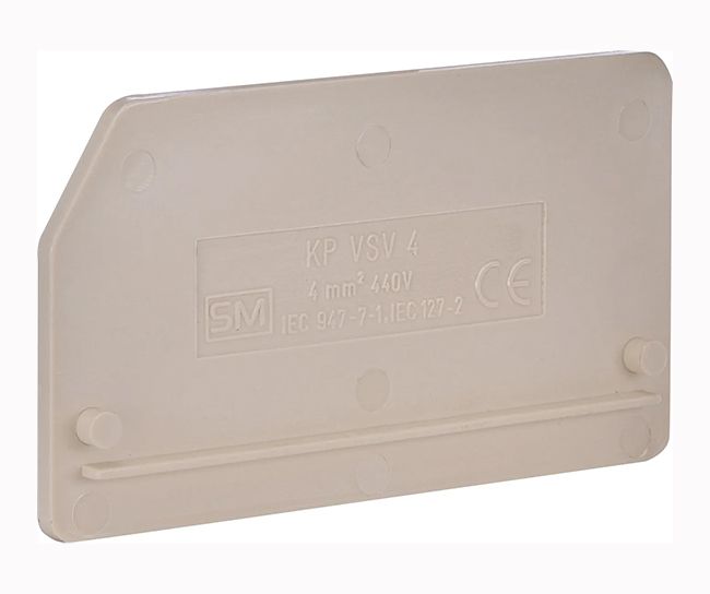 Замыкающая перегородка ETI KP 4 VSV служит для разделения клемм и защиты от случайного прикосновения к токоведущим частям. Совместима с линейкой клемм ETI VSV 4.