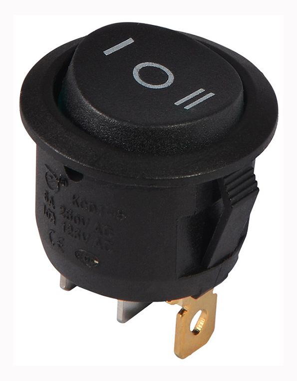 Переключатель 1 кл. KCD1-5-103 B/B (круглый черный перекидной) АСКО(A0140040070)