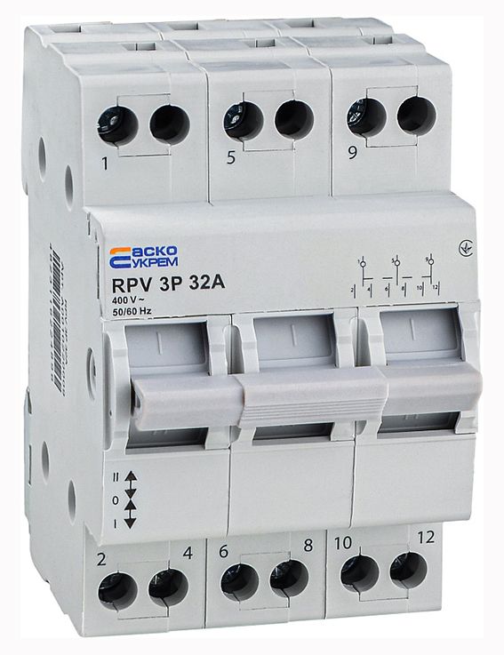 Перемикач вводу ручний RPV 3P 32A (1-0-2) Аско(A0010220009)