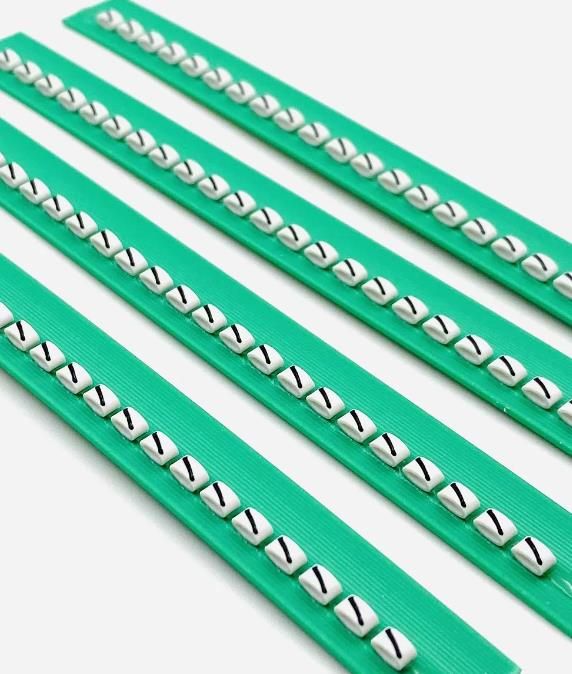 Кожна планка складається з маркувальних елементів із попередньо надрукованими на них позначеннями або без них. Усі елементи мають однаковий розмір та наклеєні на пластмасову основу.