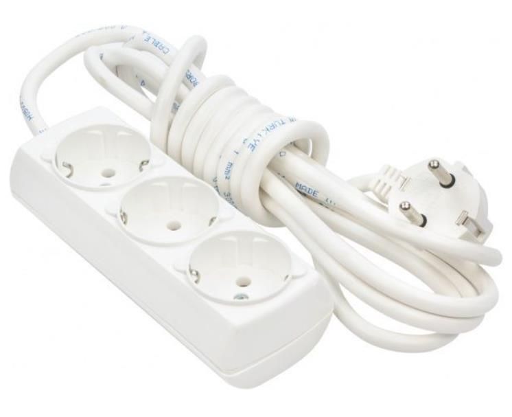 Подовжувач 3 гн. 3 м з з/к Borsan, білий BR-1553-3(BR-1553-3)
