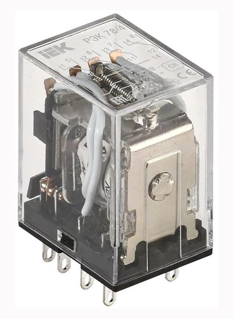 Реле промежуточные модульной серии РЭК77 и РЭК78 предназначены для передачи команд управления исполнительными элементами путем коммутации их электрических цепей своими переключающими контактами. Реле соединяются с розеточными модульными разъемами РРМ77 и РРМ78, устанавливаемыми на DIN-рейке. На разъемах расположены зажимы выводов переключающих контактов и катушки. В реле применяются серебросодержащие контакты.