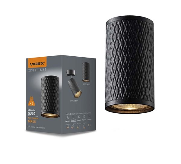 Светильник VIDEX под лампу GU10 VL-SPF02A-BP накладной поворотный чорный/призма(VL-SPF02A-BP)