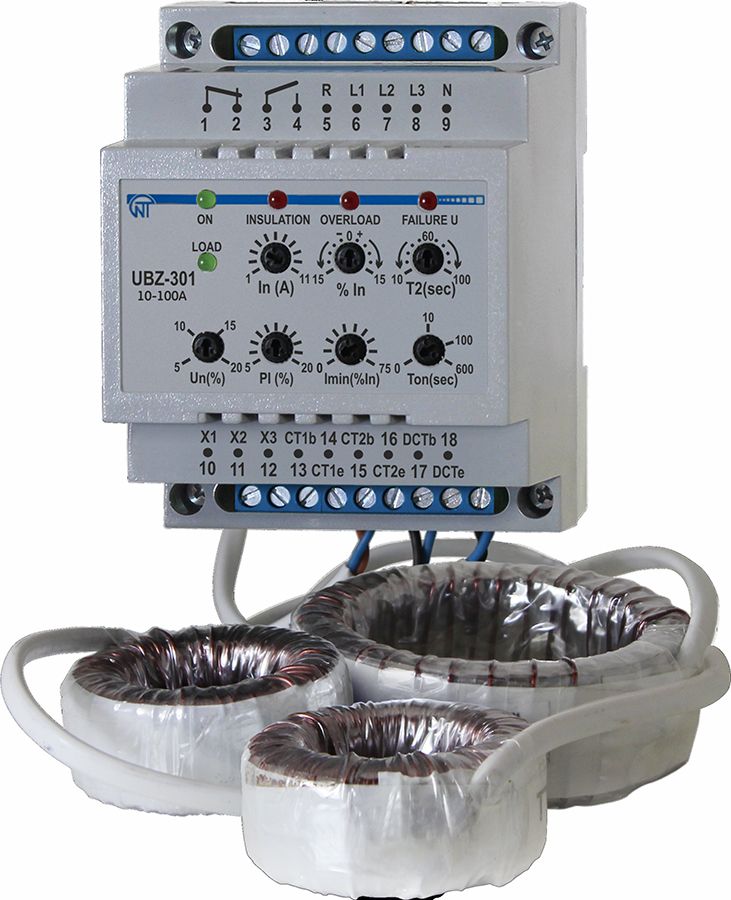 Универсальный блок защиты электродвигателей УБЗ-301 (далее по тексту блок) предназначен для постоянного контроля параметров сетевого напряжения и действующих значений фазных/линейных токов трехфазного электрооборудования 380 В/50 Гц, в первую очередь, асинхронных электродвигателей (ЭД), мощностью от 2,5 кВт до 315 кВт, в том числе и в сетях с изолированной нейтралью.