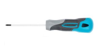 Отвертка торговой марки GROSS изготовлена из высококачественной инструментальной стали S2. Насечки на жале увеличивают трение между отверткой и шлицом крепежа, что исключает возможность повреждения шлица. На стержень отвертки длиной 75 мм нанесено хромовое защитное покрытие, которое защищает металл от коррозии. Трехкомпонентная рукоятка длиной 99 мм, имеющая запатентованную форму, удобно и надежно фиксируется в руке. Твердость рабочих частей отвертки (стержень, рукоятка) составляет 52 HRC, максимально крутящий момент затяжки — 1 H*m. Снабжена отвертка подвесной картой, удобной для размещения инструмента на стенде.