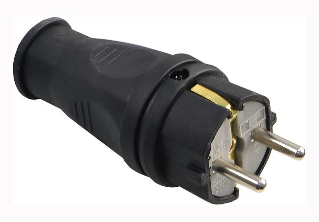 Вилка каучуковая пряма 2Р+РЕ 16А IP44 Аско(A0250010001)