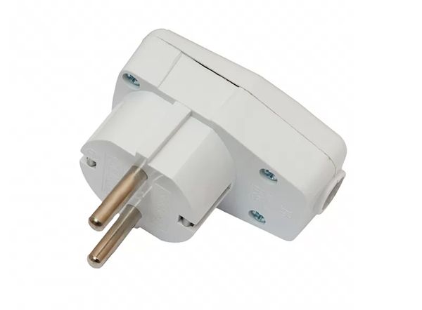 Вилка угловая с з/к и с кнопкою Luxel 1035 белая(1035)
