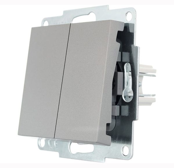 Вимикач 2-кл Lezard VESNA сірий (Платина)(742-3588-101)